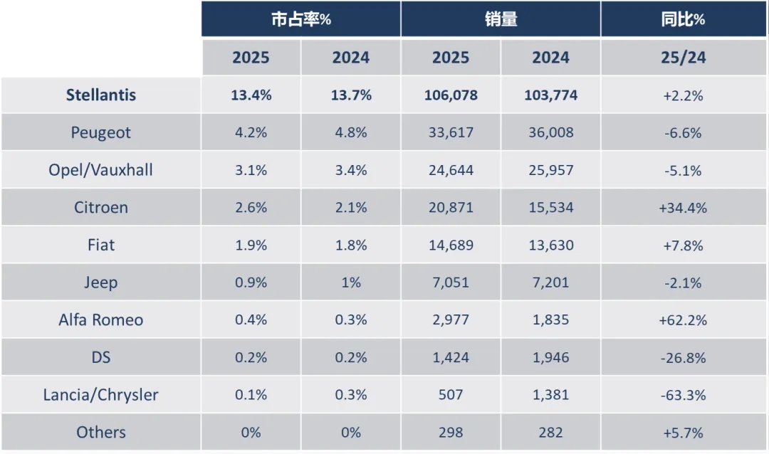Stellantis Group:8月銷售106,078輛,銷量同比增加2.2%,市場占比13.4%。