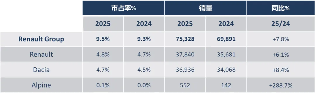 Renault Group:8月銷售75,328輛,銷量同比上升7.8%,市場占比9.5%。